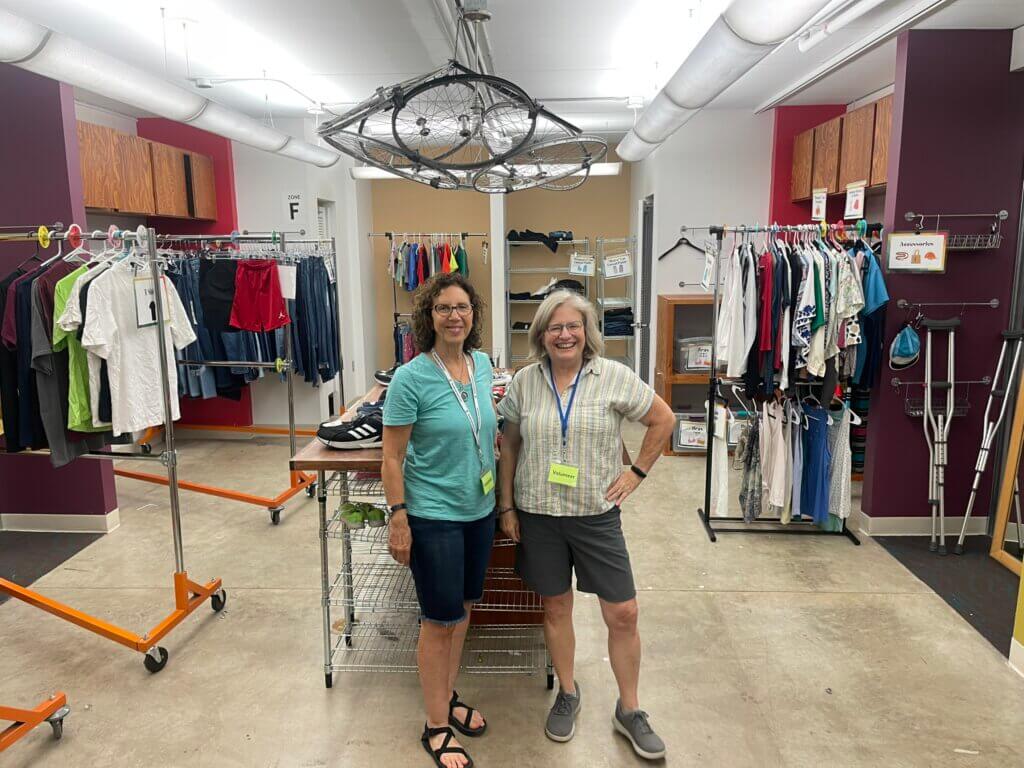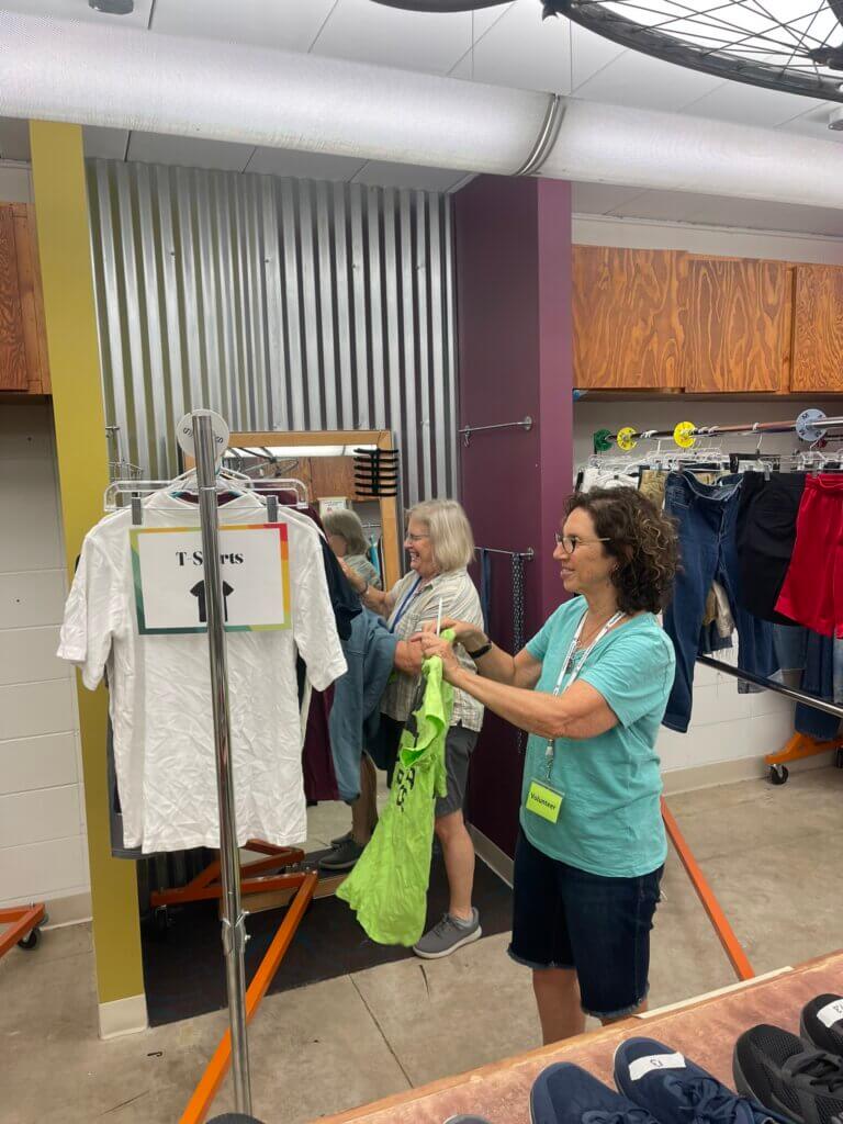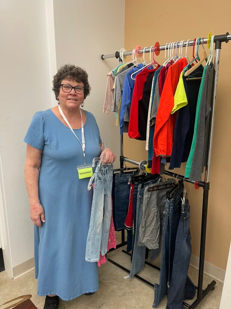 Behind the scenes, the Clothing Closet is a hive of activity. Volunteers like Meredith, who you might remember from a previous blog post, are the lifeblood of the operation. Meredith started coming in every Wednesday to help sort through donations and organize the space, and now she’s joined by Kay and Ann, forming a powerhouse team that knows the Clothing Closet inside and out. Having volunteers who know the space well and can keep everything running smoothly makes all the difference.
