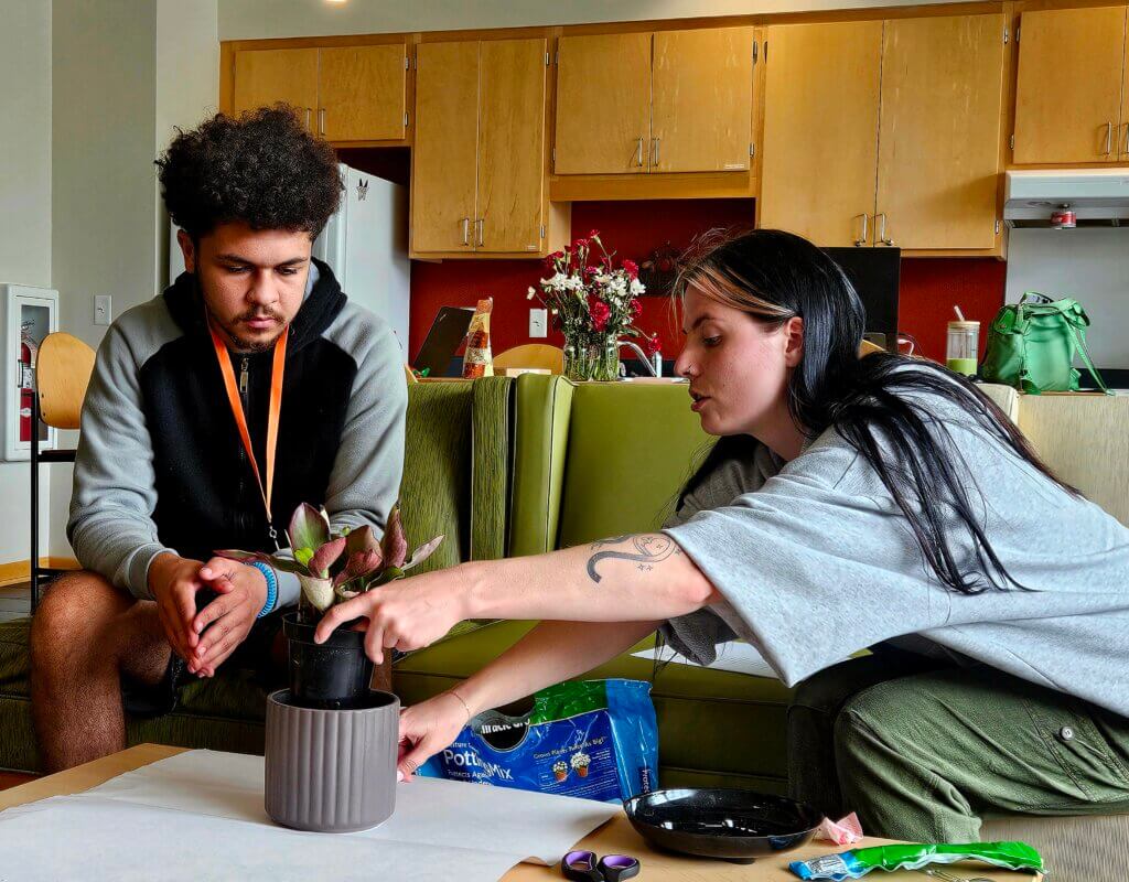 Case managers balance transactional support with relational work. “Everybody’s needs are different,” says Dee. “Some residents we see every day, others less often. A lot of it is providing emotional support—someone to vent to or an older, trusted adult to get advice from.”